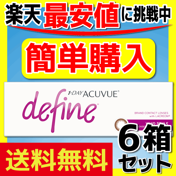 【ジョンソン&ジョンソン】ワンデー アキュビュー ディファイン モイスト6箱セット(1箱30枚入)【1日使い捨てコンタクトレンズ・高度管理医療機器】【日本全国送料無料】メーカー(製造):ジョンソン・エンド・ジョンソン株式会社 区部:高度管理医療機器 広告文責 おつよコンタクト株式会社 電話番号:070-5617-9111 販売名:ワンデー アキュビュー ディファイン モイスト 承認番号:22300BZX00126000 原産国:アメリカ合衆国又はアイルランド共和国ワンデー アキュビュー ディファイン モイスト 新色「ラディアント シック」先行販売!! 新色含め7色全色 楽天最安値に挑戦中! 度数を選ぶだけの簡単購入♪