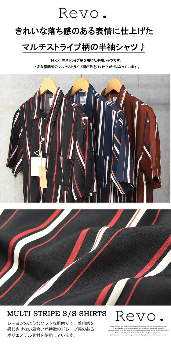 ギフト対応 トレンドのストライプ柄を用いた半袖シャツ。