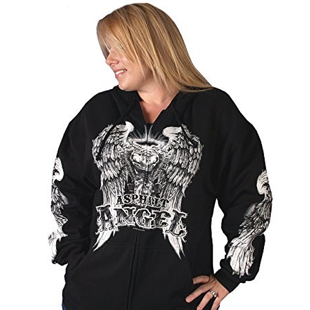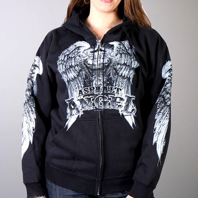 【送料無料!(条件あり)】日本未発売! セール価格! [Asphalt Angel Zipper Hoodie] HOTLEATHERS オリジナルプリントレディースパーカー 本国ハーレー乗り愛用の米国バイカー専門アパレルブランド「ホットレザー」からの直輸入品です! 【 特別価格! HOTLEATHERS Original Print Ladies Sweatshirt 】 ハーレーダビッドソン乗り愛用の有名バイカーアパレルブランド、 "ホットレザー"オリジナルデザインのレディースフードパーカーです! サッと羽織るだけで暖かく、これ一着でバイカーファッションがキマる 本場テイスト溢れるワイルドなデザイン♪