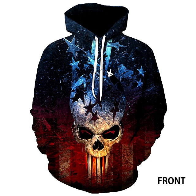 【送料無料!】日本未発売!今季注目トップス登場! [Star Skull Print Hoodies Pullover Sweatshirts]スカルプリントフーディープルオーバースウェットパーカー 毎日着たくなるヘビロテ間違いなしのアメカジパーカー!ワイルドなプリントでルックスキマる!! 【 特別価格! Star Skull Print Hoodies Pullover Sweatshirts 】 鮮やかなカラーとクリアな前後のプリントが目を引くフーディーパーカー! レザーベストとの重ね着はもちろん、MA-1ブルゾンや ハードなライダースジャケットとも相性良し♪