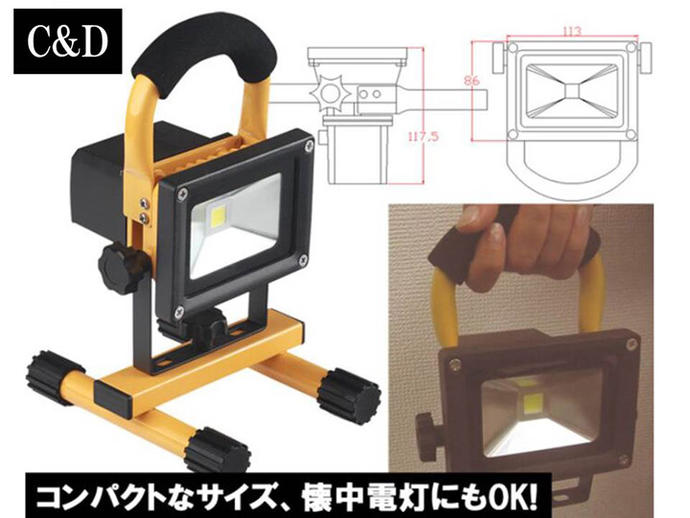 LED充電式ボータブル作業灯 投光器 ★ 10w 4段調光 ワークライト100V-240V 12V/24V も対応 大容量バッテリー搭載 一年保証