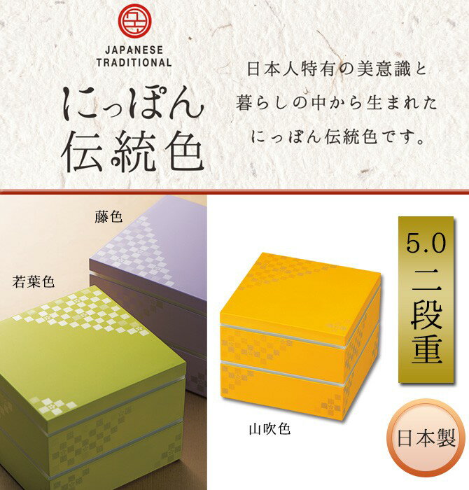 重箱 2段 重箱 2-3人用 おせち料理 おしゃれ 運動会 日本伝統色 5.0二段重 山吹色 73222 ギフト プレゼント 【RCP】