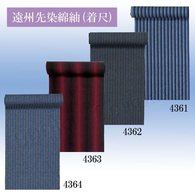 反物)遠州先染綿紬 着尺 紳士 綿紬縞