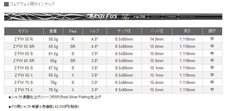 キャロウェイ GBB EPIC/XR/XR Pro スリーブ装着シャフト Triphas Basileus Z(ゼット) FW 全長フルボロンコンポジットシャフト。