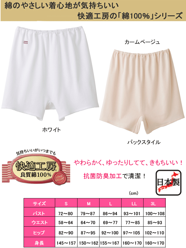 ロングセラーの快適工房 オープンショーツ M L 腰ゴム取り替え可能 ★